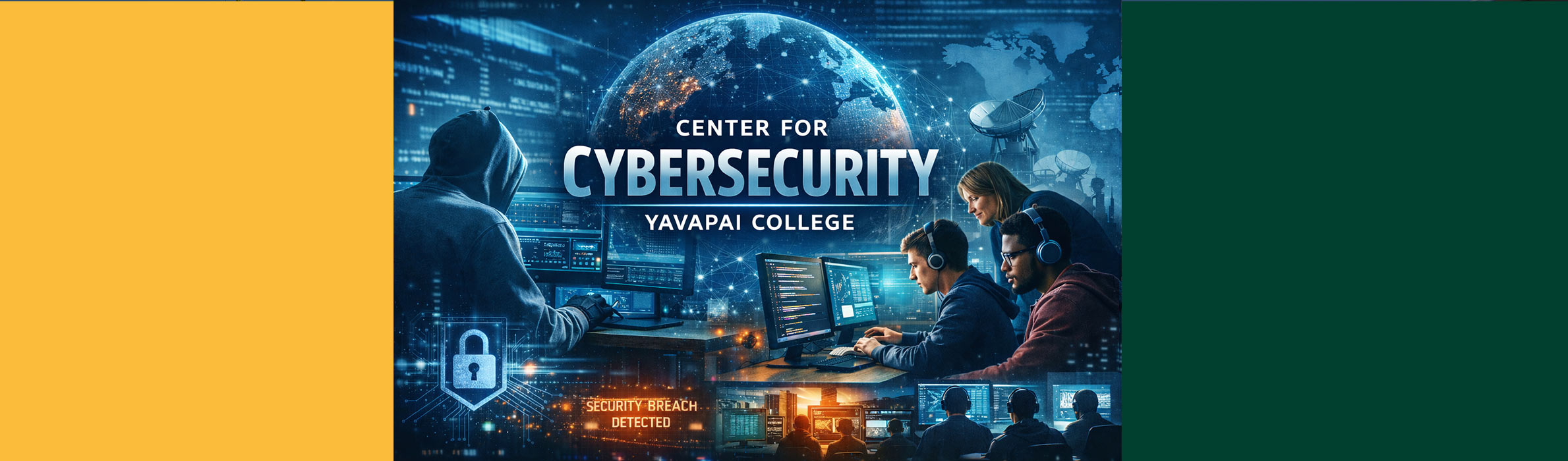 The Center for Cybersecurity at Yavapai College serves as the focal point for cybersecurity education, collaboration, and workforce preparation. The Center supports academic programs, connects students with industry opportunities, and promotes cybersecurity awareness throughout the community.